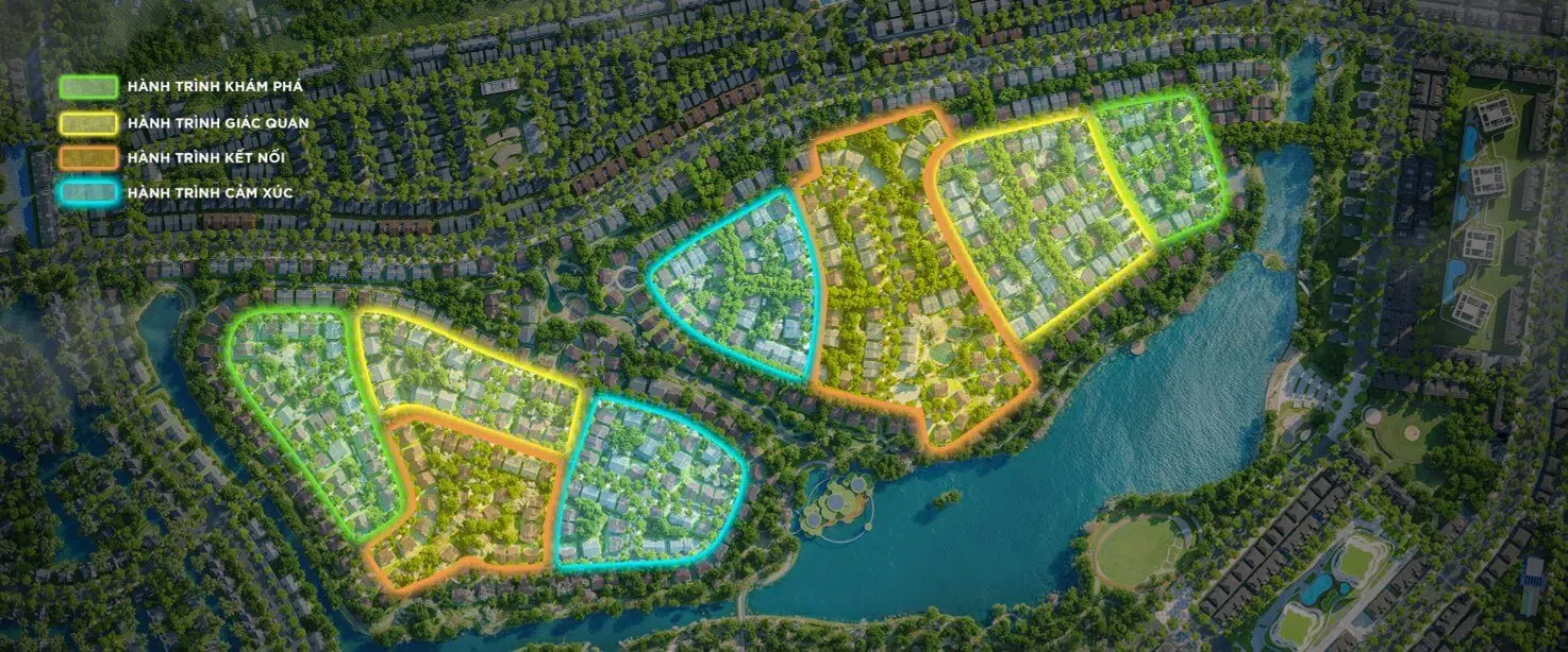 Dự án được chia thành các phân khu với 4 hành trình Retreat, mỗi hành trình là một sắc màu, một chủ đề và một trải nghiệm riêng biệt, cùng hướng đến lối sống an lành và hạnh phúc bền vững.