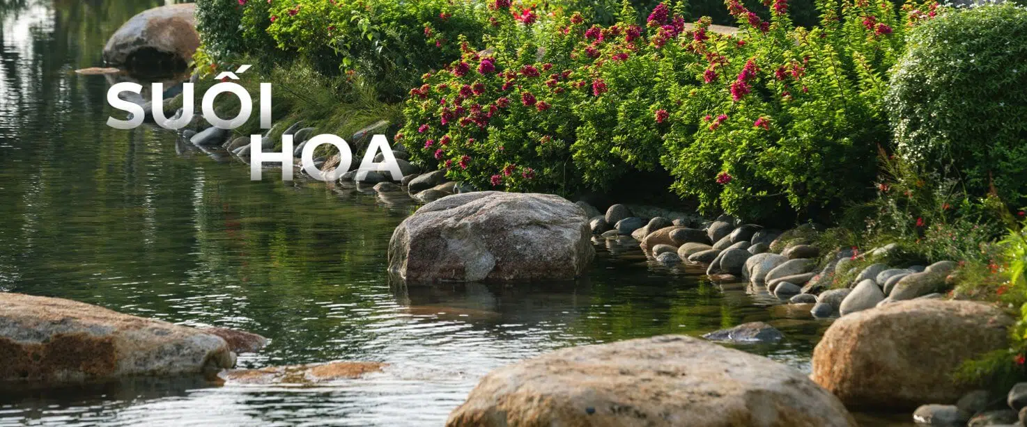 - Suối Hoa: Dòng suối nhân tạo mềm mại len lỏi qua cảnh quan, kết hợp cùng hoa cỏ và đá tự nhiên, tạo nên bức tranh thủy mặc sống động giữa lòng khu đô thị.